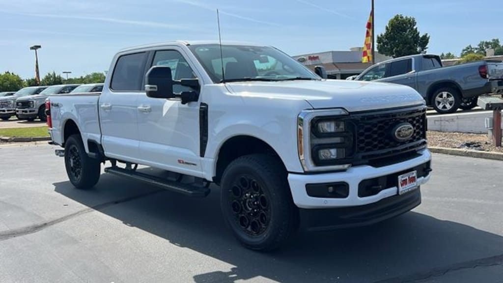 Vehicle is equipped with 5th Wheel/Gooseneck Hitch Prep Package, Black Appearance Package (6" Ebony Black Angular Running Boards, Black Painted Front Grille Surround, Body Color Front and Rear Bumpers, and Ebony Black Painted Mirror Caps), FX4 Off-Road Package (Hill Descent Control, Off-Road Specifically Tuned Shock Absorbers, and Unique FX4 Off-Road Box Decal), GVWR: F-250 >10K Package, High Capacity 11.6" Axle Upgrade Package, Lariat Ultimate Package (4-Way Adjustable Headrests, Head-Up Display, Power-Deployable Running Boards, Power-Sliding Rear-Window with Defrost, Privacy Glass, Pro Trailer Backup Assist, Pro Trailer Hitch Assist, Radio: B&O Unleashed Sound System by Bang & Olufsen, SiriusXM Radio with 360L, SYNC 4 with Enhanced Voice Recognition, and Tailgate Step and Handle), Order Code 608A (Flow-Through Console, Front ActiveX Trimmed 40/Console/40 Seats, Radio: B&O Sound System by Bang and Olufsen, and Wheels: 18" Bright Machined and Carbonized Gray Aluminum), 4WD, 4-Wheel Disc Brakes, 410 Amp Dual Alternators, 8 Speakers, ABS brakes, Adaptive Cruise Control with Stop-and-Go, Adjustable pedals, Air Conditioning, All-Weather Floor Mats, Alloy wheels, AM/FM radio: SiriusXM with 360L, Auto High-beam Headlights, Auto-dimming Rear-View mirror, Automatic High Beam, Automatic temperature control, BLIS with Cross-Traffic Alert, Brake assist, Bumpers: chrome, Compass, Delay-off headlights, Driver door bin, Driver vanity mirror, Dual AGM 68 AH Battery, Dual front impact airbags, Dual front side impact airbags, Electronic Stability Control, Emergency communication system: SYNC 4 911 Assist, Engine Block Heater, Front and Rear Parking Sensors, Front anti-roll bar, Front Bucket Seats, Front Center Armrest, Front dual zone A/C, Front fog lights, Front License Plate Bracket, Front reading lights, Fully automatic headlights, Garage door transmitter, Heated door mirrors, Heated front seats, Heated rear seats, Heated steering wheel, Illuminated entry, Internet access capable: FordPass Connect 5G, Lane-Keeping System, Low tire pressure warning, Memory seat, Navigation System, Outside temperature display, Overhead airbag, Overhead console, Panic alarm, Passenger door bin, Passenger vanity mirror, Pedal memory, Post-Collision Braking, Power door mirrors, Power driver seat, Power passenger seat, Power steering, Power windows, Pre-Collision Assist, Pro Power Onboard - 2kW, Rain sensing wipers, Rapid-Heat Supplemental Cab Heater, Rear Parking Sensors, Rear reading lights, Rear seat center armrest, Rear step bumper, Rear window defroster, Remote keyless entry, Security system, Speed control, Split folding rear seat, Steering wheel mounted audio controls, Tachometer, Telescoping steering wheel, Tilt steering wheel, Traction control, Trip computer, Turn signal indicator mirrors, Twin Panel Power Moonroof, Upfitter Switches (6), Variably intermittent wipers, and Ventilated front seats. Price includes: $2000 - Retail Customer Cash. Exp. 03/31/2026