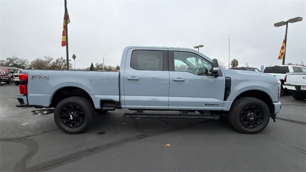 Vehicle is equipped with Black Appearance Package (6" Ebony Black Angular Running Boards, Black Painted Front Grille Surround, Body Color Front and Rear Bumpers, and Ebony Black Painted Mirror Caps), Ford Connectivity Package (1-Year Included), FX4 Off-Road Package (Hill Descent Control, Off-Road Specifically Tuned Shock Absorbers, and Unique FX4 Off-Road Box Decal), GVWR: F-250 >10K Package, Internet access capable: 5G Modem - Ford Connectivity Package, Lariat Premium Package (Power-Sliding Rear-Window with Defrost, Privacy Glass, Pro Trailer Backup Assist, and Pro Trailer Hitch Assist), Order Code 608A (Flow-Through Console, Front ActiveX Trimmed 40/Console/40 Seats, Radio: B&O Sound System by Bang and Olufsen, SiriusXM with 360L, SYNC 4 with Enhanced Voice Recognition, and Wheels: 18" Bright Machined and Carbonized Gray Aluminum), 4WD, 4-Wheel Disc Brakes, 410 Amp Dual Alternators, 8 Speakers, ABS brakes, Adaptive Cruise Control with Stop-and-Go, Adjustable pedals, Air Conditioning, All-Weather Floor Mats, Alloy wheels, AM/FM radio: SiriusXM with 360L, Auto High-beam Headlights, Auto-dimming Rear-View mirror, Automatic High Beam, Automatic temperature control, BLIS with Cross-Traffic Alert, Brake assist, Bumpers: chrome, Compass, Delay-off headlights, Driver door bin, Driver vanity mirror, Dual AGM 68 AH Battery, Dual front impact airbags, Dual front side impact airbags, Electronic Stability Control, Emergency communication system: SYNC 4 911 Assist, Front and Rear Parking Sensors, Front anti-roll bar, Front Bucket Seats, Front Center Armrest, Front dual zone A/C, Front fog lights, Front License Plate Bracket, Front reading lights, Fully automatic headlights, Garage door transmitter, Heated door mirrors, Heated front seats, Heated rear seats, Heated steering wheel, Illuminated entry, Lane-Keeping System, Low tire pressure warning, Memory seat, Navigation system: Connected Navigation, Outside temperature display, Overhead airbag, Overhead console, Panic alarm, Passenger door bin, Passenger vanity mirror, Pedal memory, Post-Collision Braking, Power door mirrors, Power driver seat, Power passenger seat, Power steering, Power windows, Pre-Collision Assist, Rain sensing wipers, Rear Parking Sensors, Rear reading lights, Rear seat center armrest, Rear step bumper, Rear window defroster, Remote keyless entry, Security system, Speed control, Split folding rear seat, Steering wheel mounted audio controls, Tachometer, Telescoping steering wheel, Tilt steering wheel, Traction control, Trip computer, Turn signal indicator mirrors, Variably intermittent wipers, and Ventilated front seats.