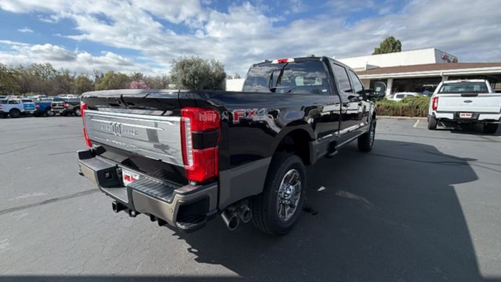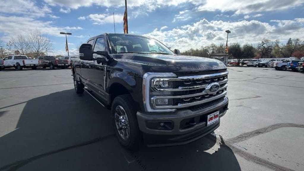 Vehicle is equipped with 5th Wheel/Gooseneck Hitch Prep Package, Ford Connectivity Package (1-Year Included), FX4 Off-Road Package (Hill Descent Control, Off-Road Specifically Tuned Shock Absorbers, and Unique FX4 Off-Road Box Decal), Internet access capable: 5G Modem - Ford Connectivity Package, Order Code 710A (Flow-Through Console, Radio: B&O Unleashed Sound System by Bang & Olufsen, SiriusXM with 360L, SYNC 4 with Enhanced Voice Recognition, Unique King Ranch Leather 40/Console/40 Seats, and Wheels: 20" Bright Machined Aluminum), 4WD, 14 Speakers, 4-Wheel Disc Brakes, 410 Amp Dual Alternators, ABS brakes, Adjustable pedals, Air Conditioning, All-Weather Floor Mats, Alloy wheels, AM/FM radio: SiriusXM with 360L, Auto High-beam Headlights, Auto tilt-away steering wheel, Auto-dimming Rear-View mirror, Automatic temperature control, Brake assist, Compass, Delay-off headlights, Driver door bin, Driver vanity mirror, Dual front impact airbags, Dual front side impact airbags, Electronic Stability Control, Emergency communication system: SYNC 4 911 Assist, Engine Block Heater, Front anti-roll bar, Front Bucket Seats, Front Center Armrest, Front dual zone A/C, Front fog lights, Front License Plate Bracket, Front reading lights, Fully automatic headlights, Garage door transmitter, Heads-Up Display, Heated door mirrors, Heated front seats, Heated rear seats, Heated steering wheel, Illuminated entry, Leather steering wheel, Low tire pressure warning, Memory seat, Navigation system: Connected Navigation, Outside temperature display, Overhead airbag, Overhead console, Panic alarm, Passenger door bin, Passenger vanity mirror, Pedal memory, Power door mirrors, Power driver seat, Power passenger seat, Power steering, Power windows, Pro Power Onboard - 2kW, Rain sensing wipers, Rapid-Heat Supplemental Cab Heater, Rear reading lights, Rear seat center armrest, Rear step bumper, Rear window defroster, Remote keyless entry, SecuriCode Keyless Entry Keypad (driver's Side), Security system, Speed control, Split folding rear seat, Steering wheel memory, Steering wheel mounted A/C controls, Steering wheel mounted audio controls, Tachometer, Telescoping steering wheel, Tilt steering wheel, Tough Bed Spray-in Bedliner, Traction control, Trip computer, Turn signal indicator mirrors, Twin Panel Power Moonroof, Upfitter Switches (6), Variably intermittent wipers, and Ventilated front seats.