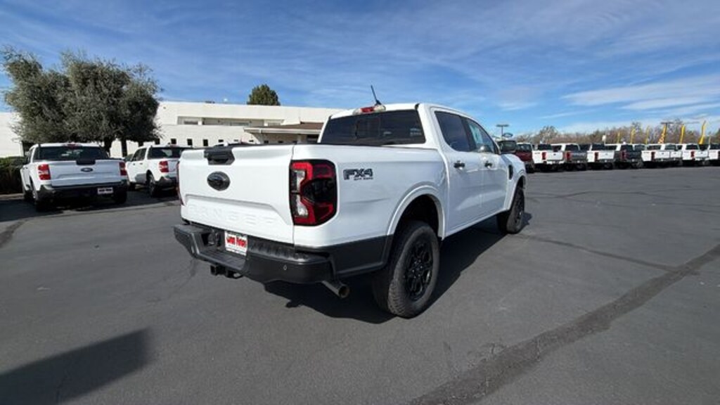 Vehicle is equipped with Advanced Towing Package Plus Technology Package (360-Degree Camera, Adaptive Cruise Control, Front Parking Sensors, Pro Trailer Backup Assist, Rear Parking Sensors with Trailer Guidance, and Trailer Brake Controller), Black Appearance Package (Black Center Bar and Surround Grille, Black Rear Bumper, Body-Color Painted Front Fascia, Front and Rear Black Ford Ovals, Painted Body-Color Wheel Lip Molding, Unique Carpet Mats, and Wheels: 18" Black Painted Aluminum), Convenience Package (LED Bed Lighting, Pro Power Onboard - 400W, and Wireless Charging Pad), Equipment Group 301A High (12" Center Display, AM/FM Stereo, Dual-Zone Electronic Climate Control (DEATC), Power-Sliding Rear Window, SiriusXM with 360L and 3-Month Trial Subscription, and SYNC 4A with Connected Navigation), FX4 Off-Road Package (FX4 Off-Road Box Decal, FX4 Selectable Drive Modes, Off-Road Screen in Center Stack, Off-Road Tuned Shocks, and Trail Control), Sport Appearance Package (Gray Painted Center Bar and Grille Surround, Gray Painted Front Fascia and Rear Bumper, Sport Box Decal, and Wheels: 17 Inch Gray-Painted Aluminum Alloy Sport), Trailer Tow Package (Class IV Trailer Hitch Receiver), 4WD, 4-Wheel Disc Brakes, 6 Speakers, ABS brakes, Air Conditioning, Alloy wheels, AM/FM radio: SiriusXM with 360L, Auto High-beam Headlights, Auto-dimming Rear-View mirror, Brake assist, Cloth Front Bucket Seats, Compass, Delay-off headlights, Driver door bin, Driver vanity mirror, Dual front impact airbags, Dual front side impact airbags, Electronic Stability Control, Emergency communication system: SYNC 4 911 Assist, Front anti-roll bar, Front Bucket Seats, Front Center Armrest, Front fog lights, Front License Plate Bracket, Front reading lights, Front wheel independent suspension, Fully automatic headlights, Illuminated entry, Leather Shift Knob, Low tire pressure warning, Navigation system: Connected Navigation, Occupant sensing airbag, Outside temperature display, Overhead airbag, Overhead console, Panic alarm, Passenger door bin, Passenger vanity mirror, Power door mirrors, Power steering, Power windows, Rear reading lights, Rear seat center armrest, Rear step bumper, Rear window defroster, Remote keyless entry, Security system, Speed control, Speed-sensing steering, Steering wheel mounted audio controls, Telescoping steering wheel, Tilt steering wheel, Traction control, Trip computer, Variably intermittent wipers, and Voltmeter.