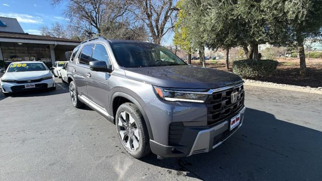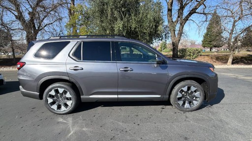 Vehicle is equipped with AWD, 12 Speakers, 3rd row seats: split-bench, 4-Wheel Disc Brakes, ABS brakes, Adaptive Cruise Control: Adaptive Cruise Control (ACC) with Low-Speed Follow, Air Conditioning, Alloy wheels, Apple CarPlay/Android Auto, Auto High-beam Headlights, Auto-dimming door mirrors, Auto-dimming Rear-View mirror, Automatic temperature control, Blind Spot Information (BSI) System warning, Bose Premium Sound System, Brake assist, Bumpers: body-color, Compass, Delay-off headlights, Driver door bin, Driver vanity mirror, Dual front impact airbags, Dual front side impact airbags, Electronic Stability Control, Emergency communication system: HondaLink, Exterior Parking Camera Rear, Four wheel independent suspension, Front anti-roll bar, Front Bucket Seats, Front Center Armrest, Front dual zone A/C, Front fog lights, Front reading lights, Fully automatic headlights, Garage door transmitter: HomeLink, Heads-Up Display, Heated and Ventilated Front Bucket Seats, Heated door mirrors, Heated front seats, Heated rear seats, Heated steering wheel, HondaLink, HondaLink Subscription Services, Illuminated entry, Knee airbag, Lane departure: Lane Keeping Assist System (LKAS) active, Low tire pressure warning, Memory seat, Navigation system: Google Maps, Occupant sensing airbag, Outside temperature display, Overhead airbag, Overhead console, Panic alarm, Passenger door bin, Passenger vanity mirror, Perforated Leather-Trimmed Seat Trim, Power door mirrors, Power driver seat, Power Liftgate, Power moonroof, Power passenger seat, Power steering, Power windows, Radio data system, Rain sensing wipers, Rear air conditioning, Rear anti-roll bar, Rear reading lights, Rear seat center armrest, Rear window defroster, Rear window wiper, Reclining 3rd row seat, Remote keyless entry, Security system, Speed control, Speed-sensing steering, Speed-Sensitive Wipers, Split folding rear seat, Spoiler, Steering wheel mounted audio controls, Tachometer, Telescoping steering wheel, Tilt steering wheel, Traction control, Trip computer, Turn signal indicator mirrors, Variably intermittent wipers, Ventilated front seats, and Wheels: 20" Shark Gray Machined Face with Black Lug Nuts.