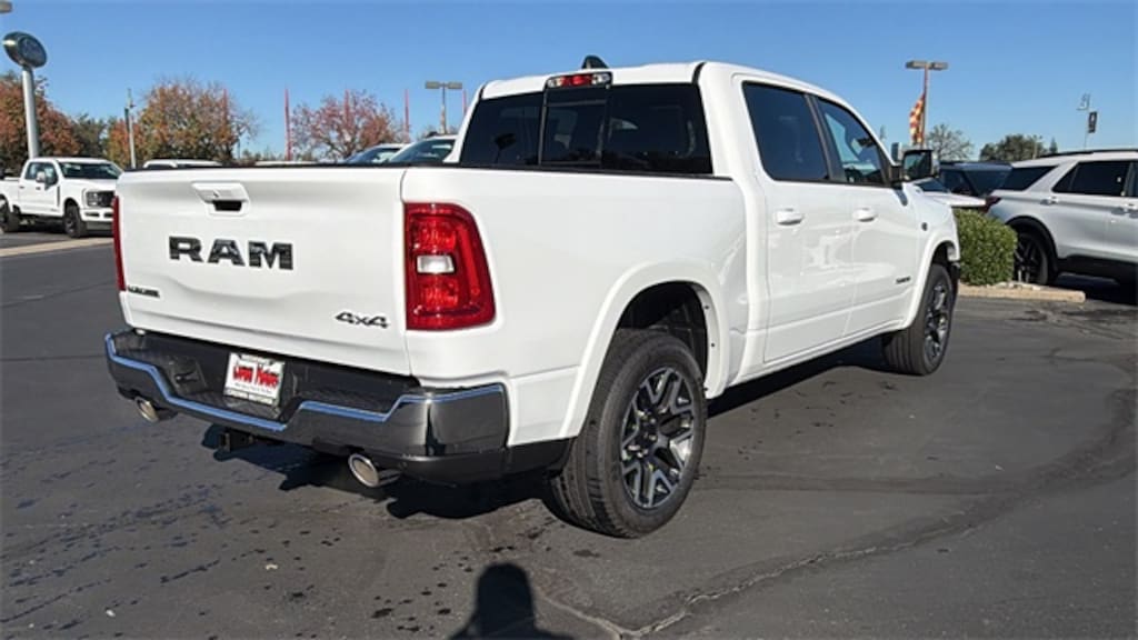 Vehicle is equipped with Laramie Level 1 Equipment Group (Rain Sensitive Windshield Wipers and Remote Tailgate Release), Quick Order Package 27H Laramie, 10 Speakers, 33 Gallon Fuel Tank, 4-Wheel Disc Brakes, 4G LTE Wi-Fi Hot Spot, ABS brakes, Active Noise Control System, Air Conditioning, Alloy wheels, AM/FM radio: SiriusXM with 360L, Anti-Spin Differential Rear Axle, Apple CarPlay/Android Auto, Audio memory, Auto High-beam Headlights, Auto Power-Folding Mirrors, Auto-dimming door mirrors, Auto-Dimming Exterior Driver Mirror, Auto-dimming Rear-View mirror, Automatic temperature control, Brake assist, Bumpers: chrome, Chrome Exterior Mirrors, Compass, Connected Travel & Traffic Services, Connectivity - US/Canada, Convex Wide-Angle Exterior Mirror Insert, Delay-off headlights, Driver door bin, Driver vanity mirror, Dual front impact airbags, Dual front side impact airbags, Electronic Stability Control, Exterior Mirrors Courtesy Lamps, Exterior Mirrors w/Heating Element, Exterior Mirrors w/Memory, Exterior Mirrors w/Supplemental Signals, Front anti-roll bar, Front Bucket Seats, Front Center Armrest w/Storage, Front dual zone A/C, Front fog lights, Front License Plate Bracket, Front reading lights, Front wheel independent suspension, Fully automatic headlights, Garage door transmitter, GPS Navigation, Heated door mirrors, Heated front seats, Heated rear seats, Heated steering wheel, Illuminated entry, Integrated Center Stack Radio, Integrated Voice Command w/Bluetooth, Leather steering wheel, Leather Trimmed Bucket Seats, Low tire pressure warning, Manufacturer's Statement of Origin, Memory seat, MOPAR Front & Rear Rubber Floor Mats, MyFlexCare Service Plan, Navigation System, Occupant sensing airbag, Off-Road Information Pages, Outside temperature display, Overhead airbag, Overhead console, Panic alarm, ParkView Rear Back-Up Camera, Passenger door bin, Passenger vanity mirror, Power door mirrors, Power driver seat, Power passenger seat, Power steering, Power windows, Radio data system, Radio: Uconnect 5 Nav w/12.0" Display, RAM Grille Badge - Chrome, Rear anti-roll bar, Rear reading lights, Rear seat center armrest, Rear step bumper, Remote keyless entry, Security system, SiriusXM Radio Service, SiriusXM w/360L, Speed control, Split folding rear seat, Steering wheel mounted audio controls, Tachometer, Telescoping steering wheel, Tilt steering wheel, Traction control, Trailer Brake Control, Trip computer, Turn signal indicator mirrors, USB Host Flip, Variably intermittent wipers, Ventilated front seats, Voltmeter, and Wheels: 20" x 9" Premium Paint/Polish. Price includes: $3500 - 2026 National Retail Consumer Cash . Exp. 12/01/2025