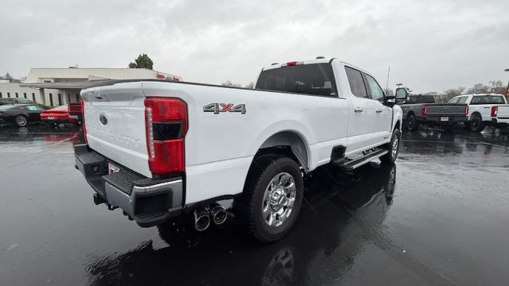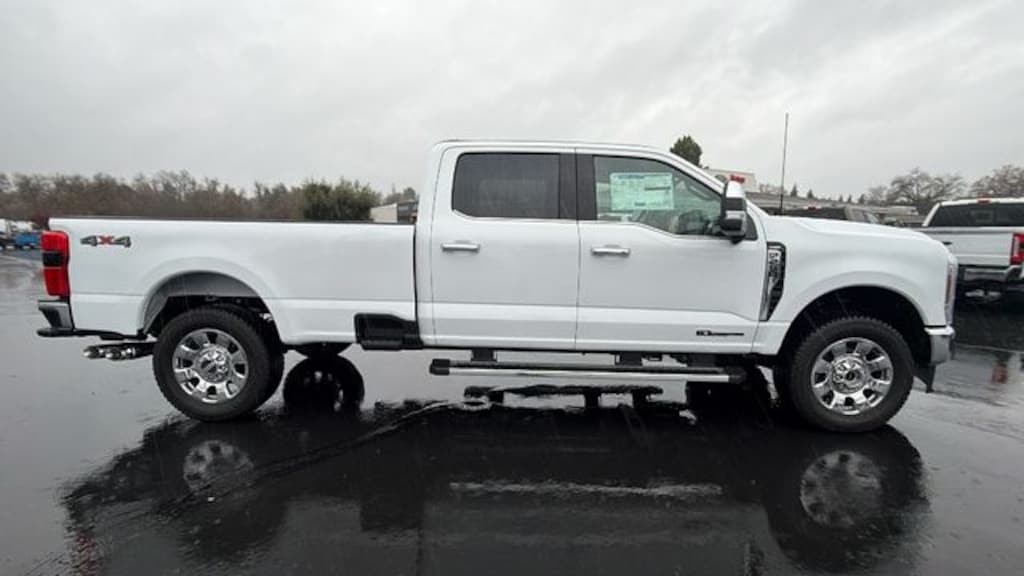 Vehicle is equipped with 5th Wheel/Gooseneck Hitch Prep Package, Chrome Package, Ford Connectivity Package (1-Year Included), GVWR: F-250 >10K Package, Internet access capable: 5G Modem - Ford Connectivity Package, Order Code 608A (Flow-Through Console, Front ActiveX Trimmed 40/Console/40 Seats, Radio: B&O Sound System by Bang and Olufsen, SiriusXM with 360L, SYNC 4 with Enhanced Voice Recognition, and Wheels: 18" Bright Machined and Carbonized Gray Aluminum), 4WD, 4-Wheel Disc Brakes, 8 Speakers, ABS brakes, Adjustable pedals, Air Conditioning, All-Weather Floor Mats, Alloy wheels, AM/FM radio: SiriusXM with 360L, Auto High-beam Headlights, Auto-dimming Rear-View mirror, Automatic temperature control, BLIS with Cross-Traffic Alert, Brake assist, Bumpers: chrome, Compass, Delay-off headlights, Driver door bin, Driver vanity mirror, Dual AGM 68 AH Battery, Dual front impact airbags, Dual front side impact airbags, Electronic Stability Control, Emergency communication system: SYNC 4 911 Assist, Front anti-roll bar, Front Bucket Seats, Front Center Armrest, Front dual zone A/C, Front fog lights, Front License Plate Bracket, Front reading lights, Fully automatic headlights, Garage door transmitter, Heated door mirrors, Heated front seats, Heated rear seats, Heated steering wheel, Illuminated entry, Low tire pressure warning, Memory seat, Navigation system: Connected Navigation, Outside temperature display, Overhead airbag, Overhead console, Panic alarm, Passenger door bin, Passenger vanity mirror, Pedal memory, Power door mirrors, Power driver seat, Power passenger seat, Power steering, Power windows, Privacy Glass, Rain sensing wipers, Rear Parking Sensors, Rear reading lights, Rear seat center armrest, Rear step bumper, Rear window defroster, Remote keyless entry, Security system, Speed control, Split folding rear seat, Steering wheel mounted audio controls, Tachometer, Telescoping steering wheel, Tilt steering wheel, Tough Bed Spray-in Bedliner, Traction control, Trip computer, Turn signal indicator mirrors, Variably intermittent wipers, and Ventilated front seats.